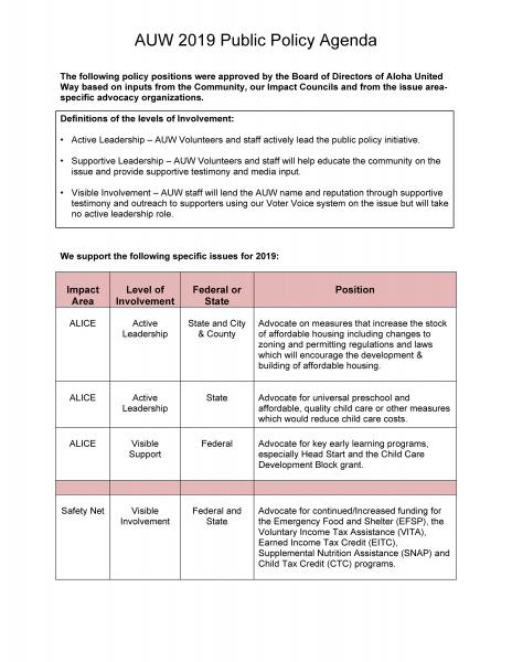 Make your voice heard and help to create real change by joining our movement. Through advocacy, Aloha United Way is working to raise awareness of the issues related to our mission, provide access to tools for making change, and offer opportunities to take action. We believe that real, sustainable community improvement requires changes in public policy.